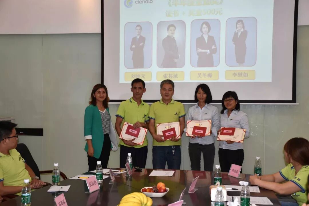 (恭喜获得半年度全勤奖的同事,掌声鼓励)